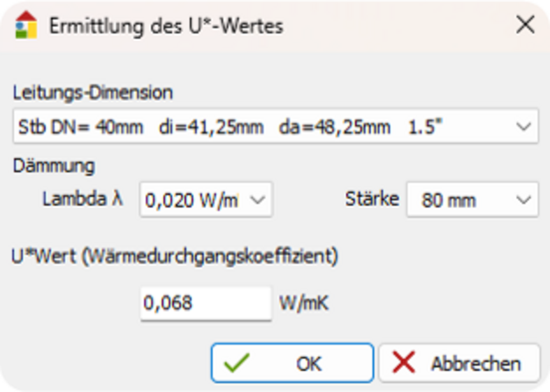 Hier können Sie weiterhin Angaben zu den U-Werten der Leitungsdämmung machen.