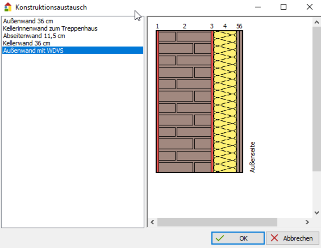 Konstruktionsaustausch: Maske zur Auswahl einer neuen Konstruktion