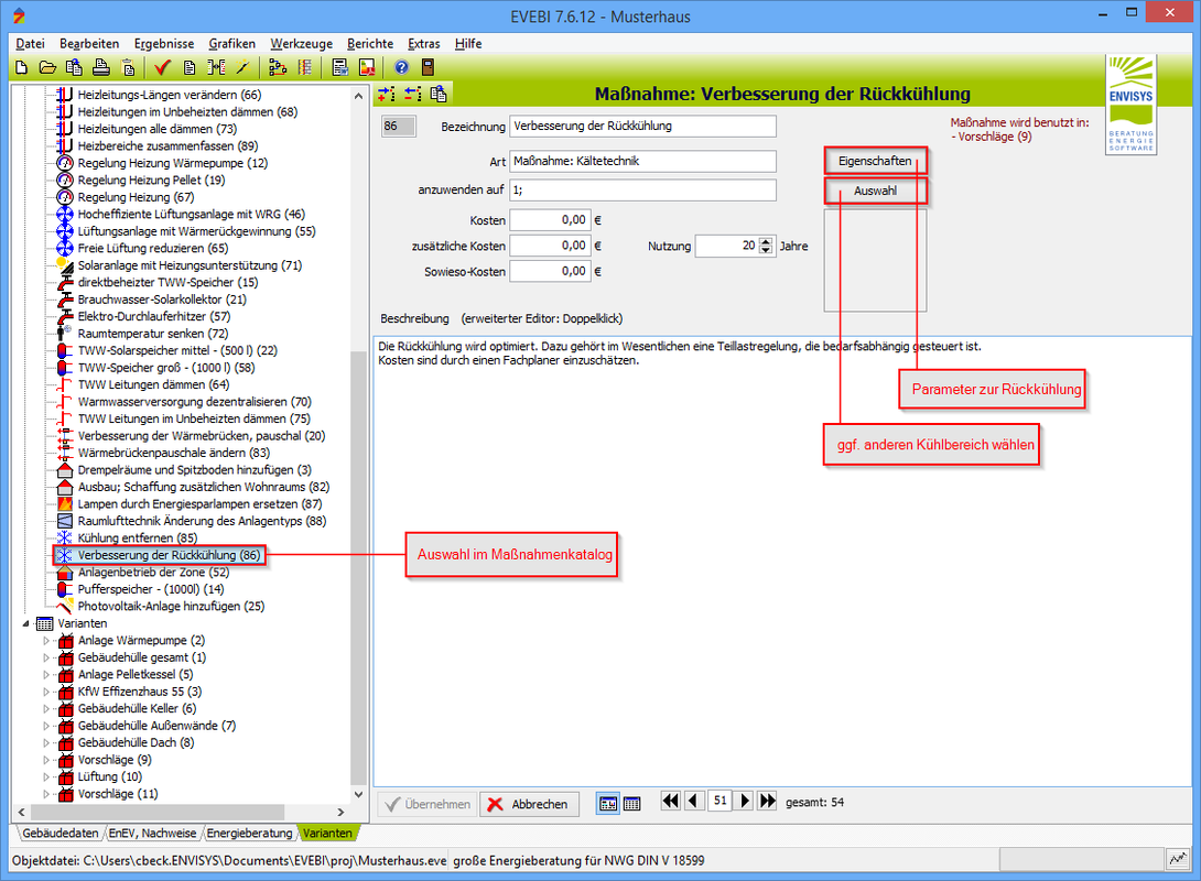 Achtung! Das Bearbeiten einer Maßnahme hat Auswirkung auf alle Varianten, denen diese Maßnahme bereits zugeordnet ist!