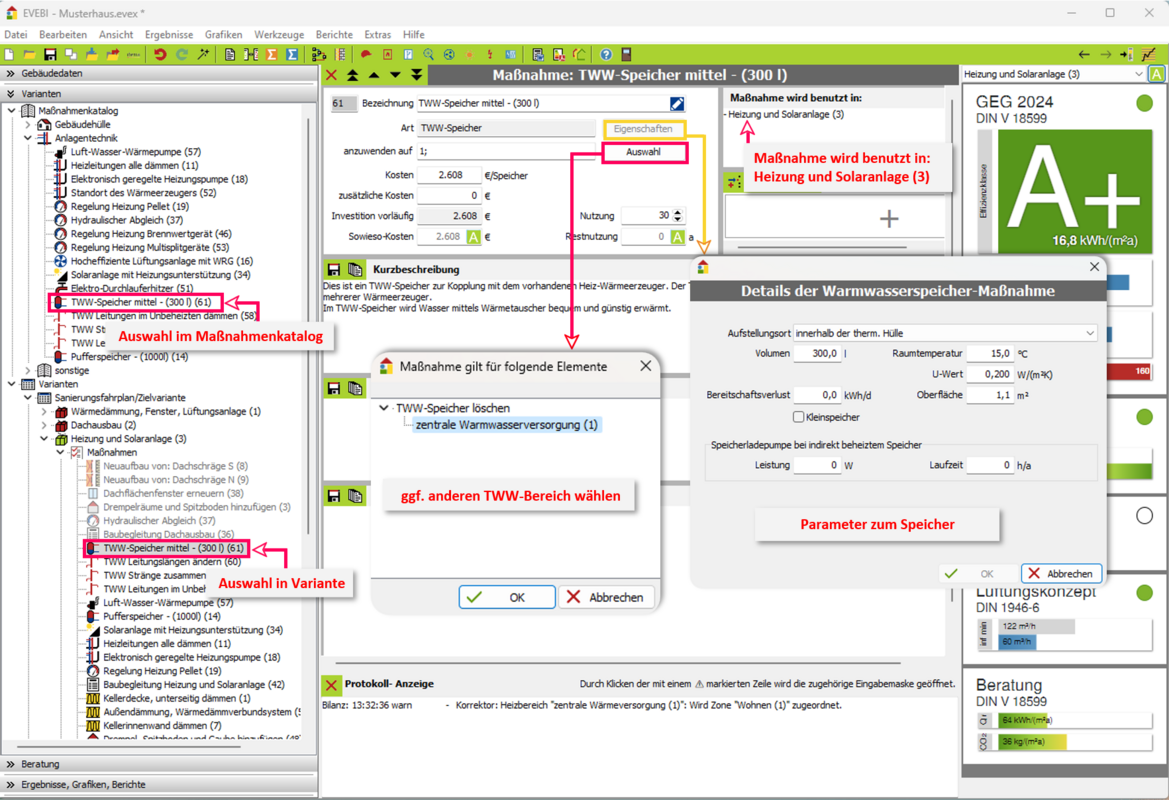 Achtung! Das Bearbeiten einer Maßnahme hat Auswirkung auf alle Varianten, denen diese Maßnahme bereits zugeordnet ist!