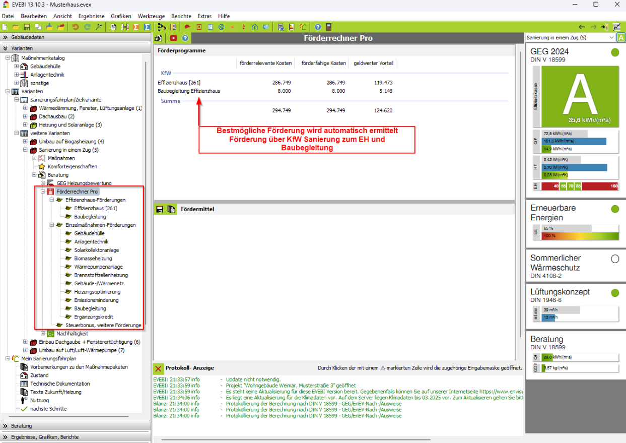 - Förderprogramm: EVEBI errechnet automatisch die günstigsten Förderprogramme.