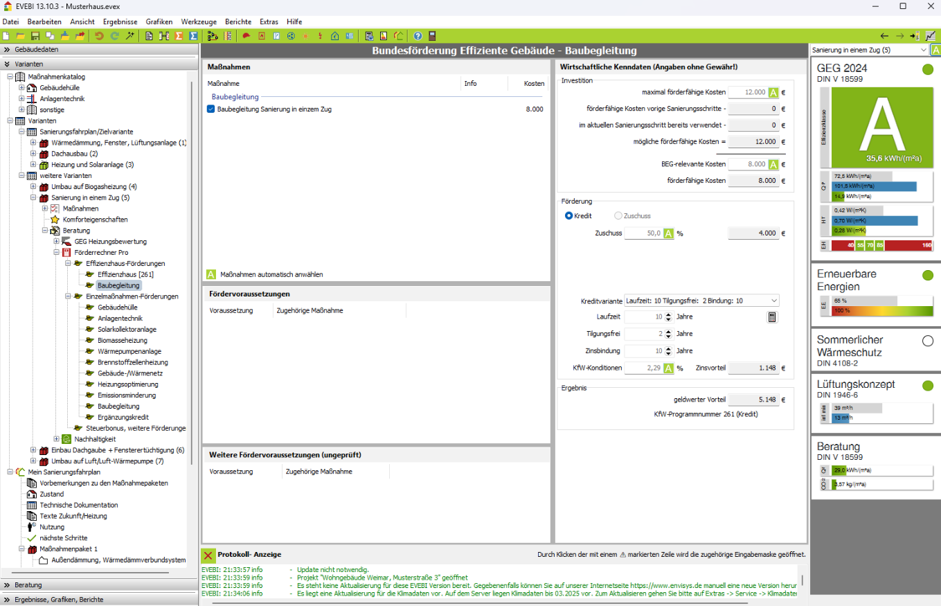 Höhe der förderfähigen Kosten. Je nachdem, ob die Förderung der Sanierungs-/Baumaßnahme als Kredit oder Zuschuss eingegeben wurde, wird dies in den Dialog der Baubegleitung übernommen.