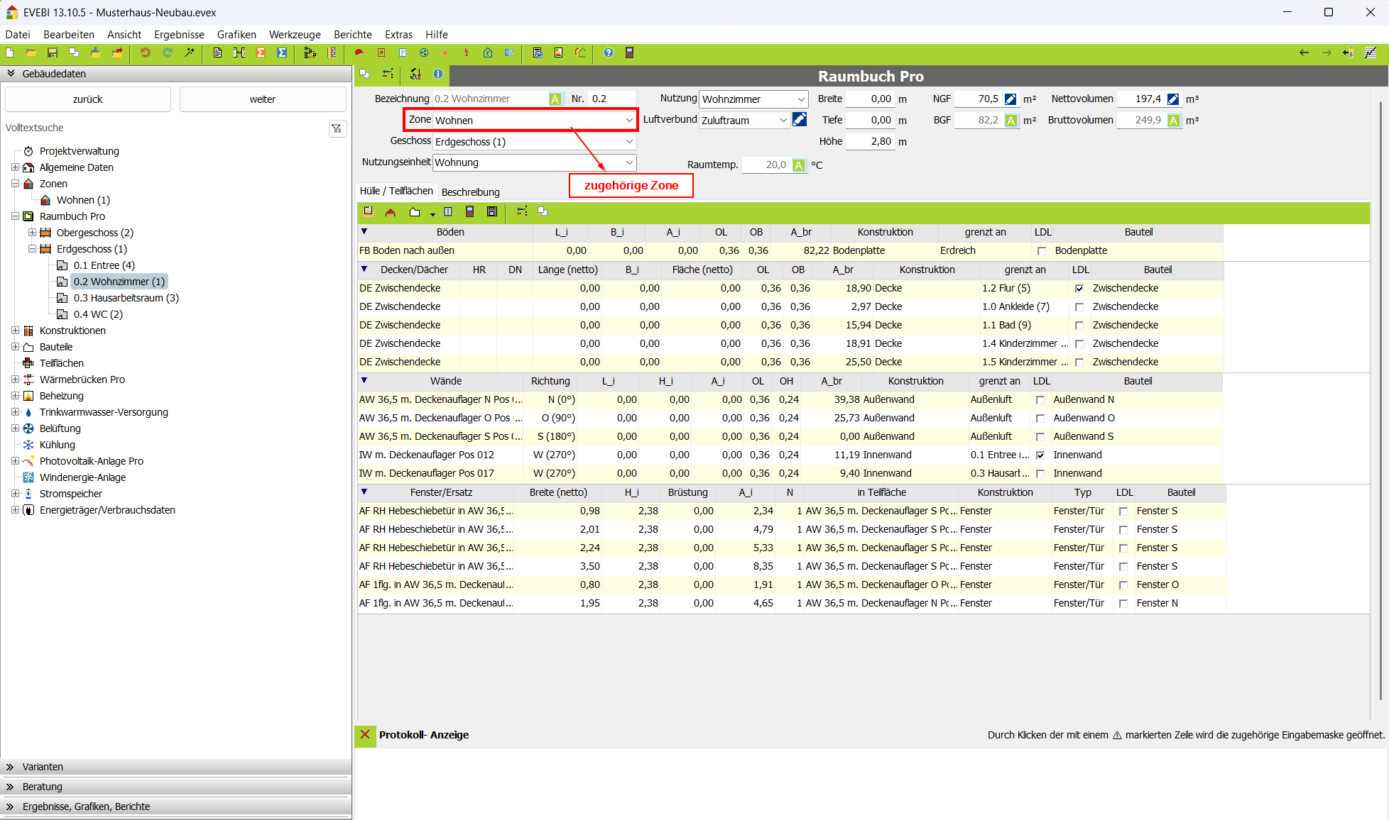 Hinweis: Die in den Zonen anzugebende konditionierte Fläche, Raumhöhe und Nettovolumen werden aus dem Raumbuch übernommen.