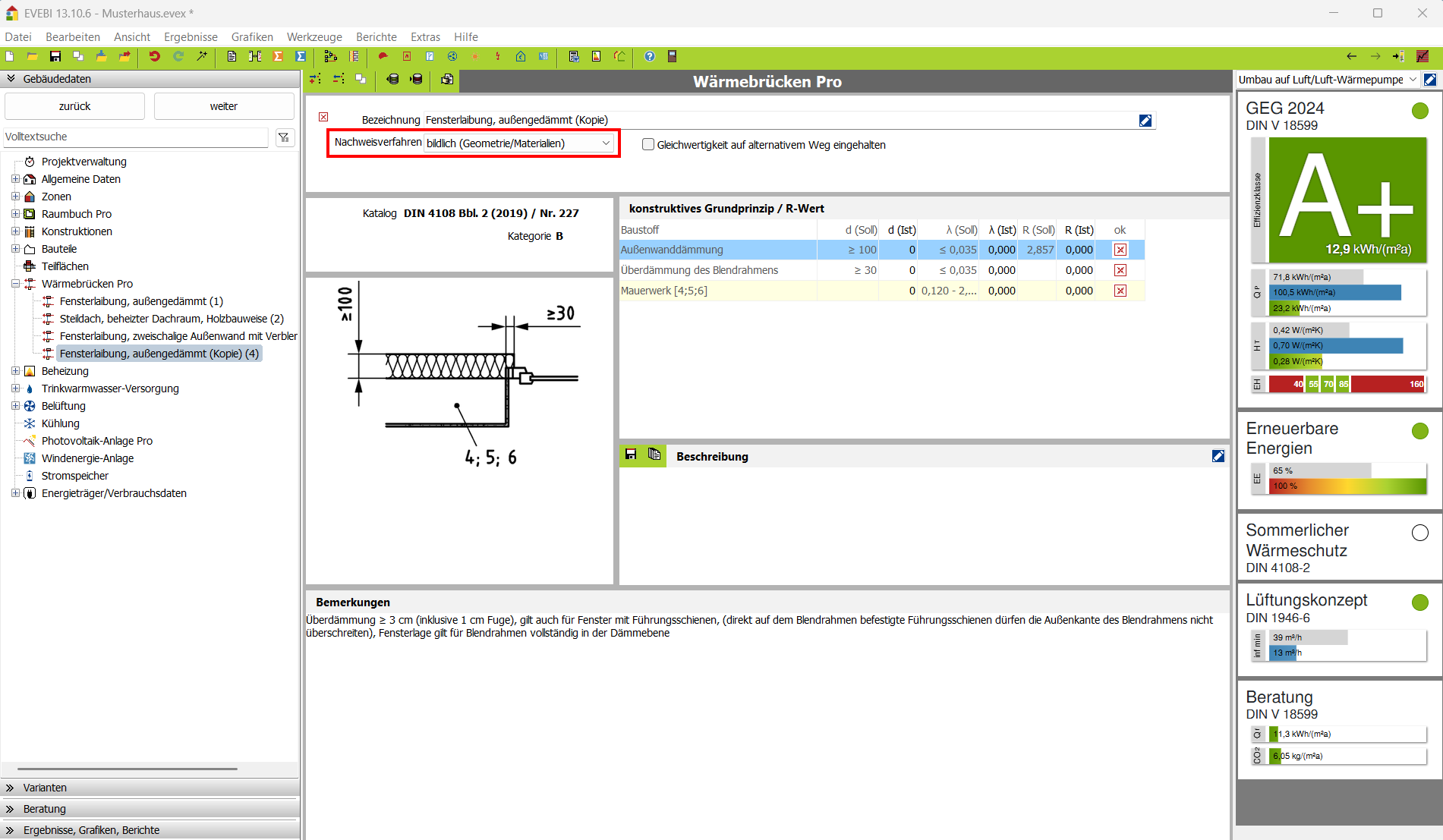 Wärmebrücken Pro: Gleichwertigkeitsnachweis bildlich Detail - Erfassen Sie ggf. weitere Wärmebrücken.
