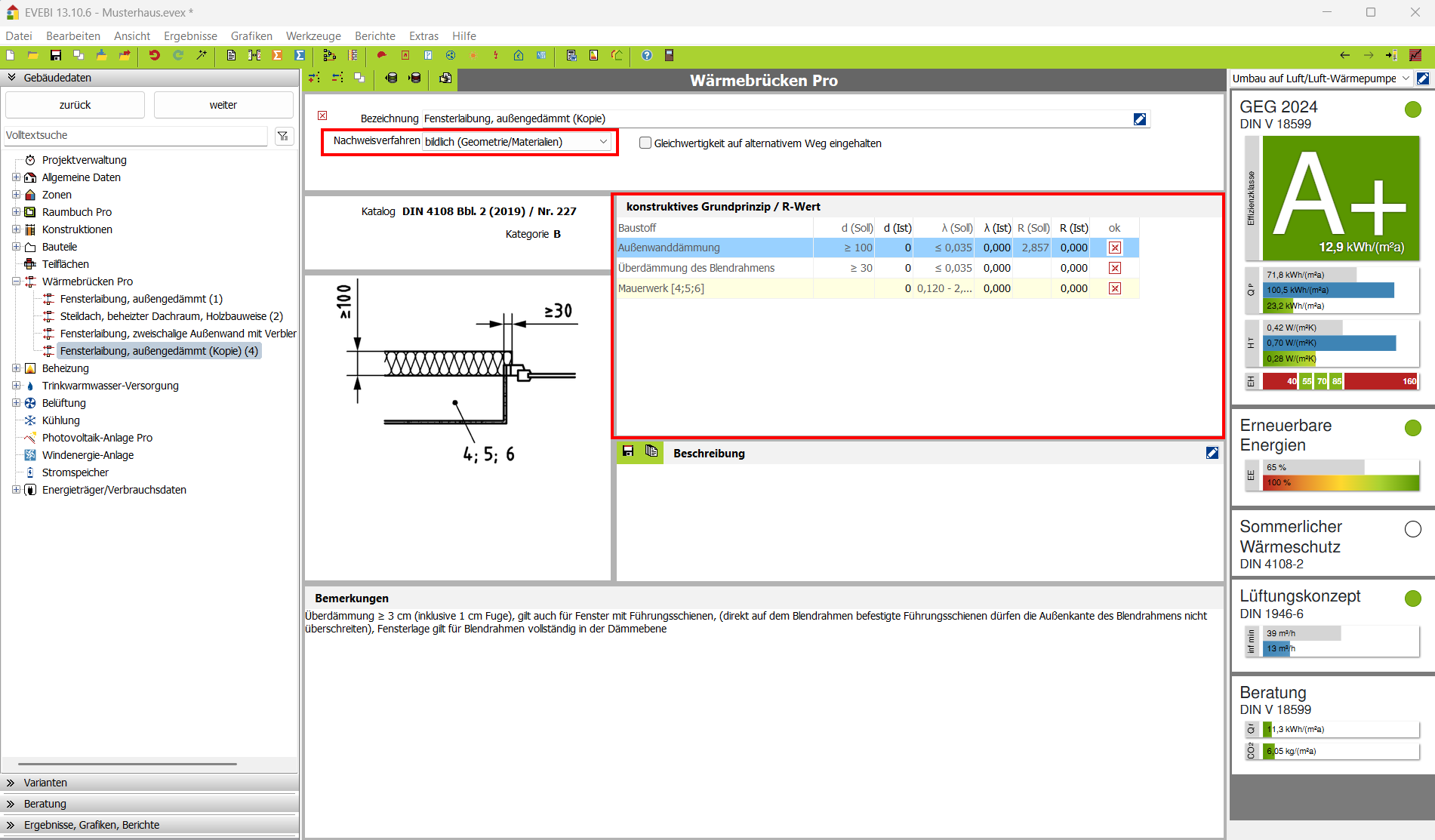 Wärmebrücken Pro: Gleichwertigkeitsnachweis KfW eingehalten
