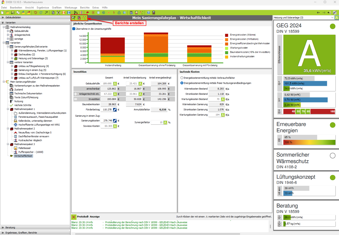 : Der Sanierungsfahrplan und Umsetzungshilfe werden direkt als pdf-Datei generiert. Diese Funktion ist nur möglich, wenn alle Daten fehlerfrei an den Bericht übergeben werden können (Vorschau ohne Fehler).