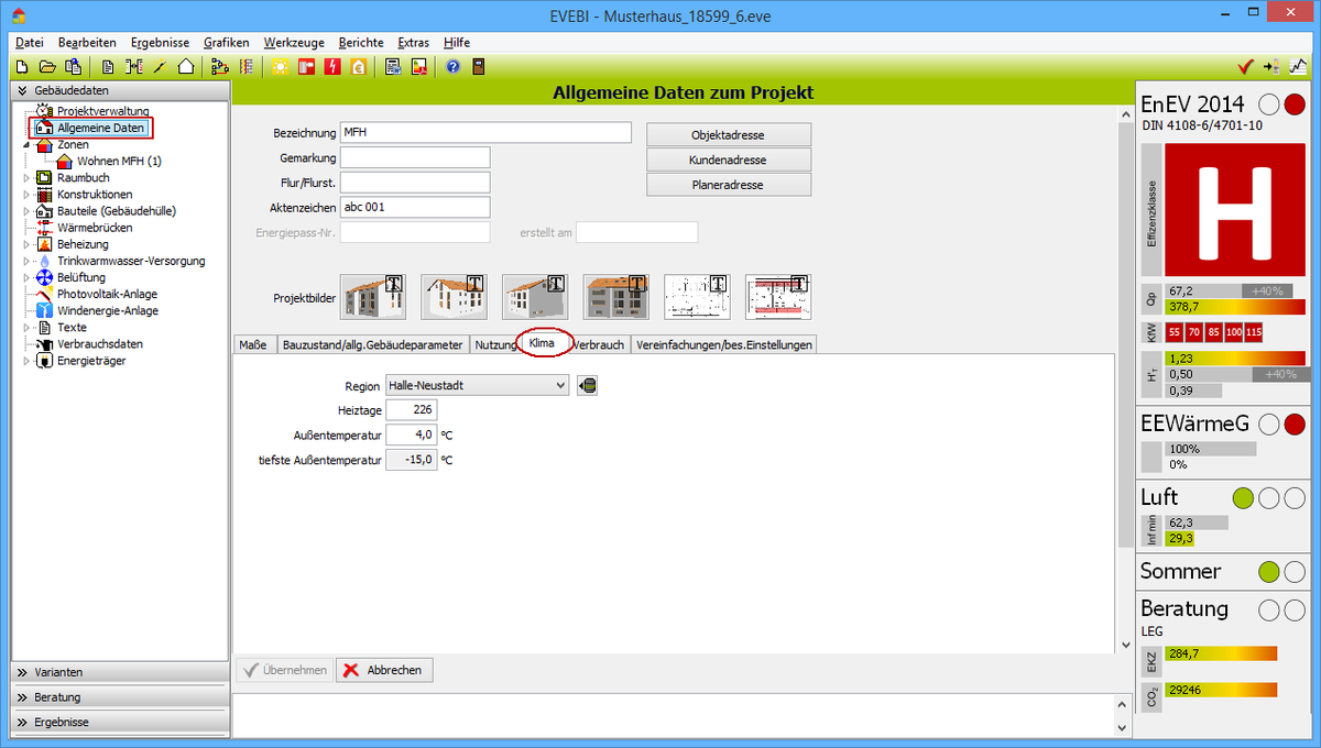 - Wählen Sie das Register Gebäudedaten.