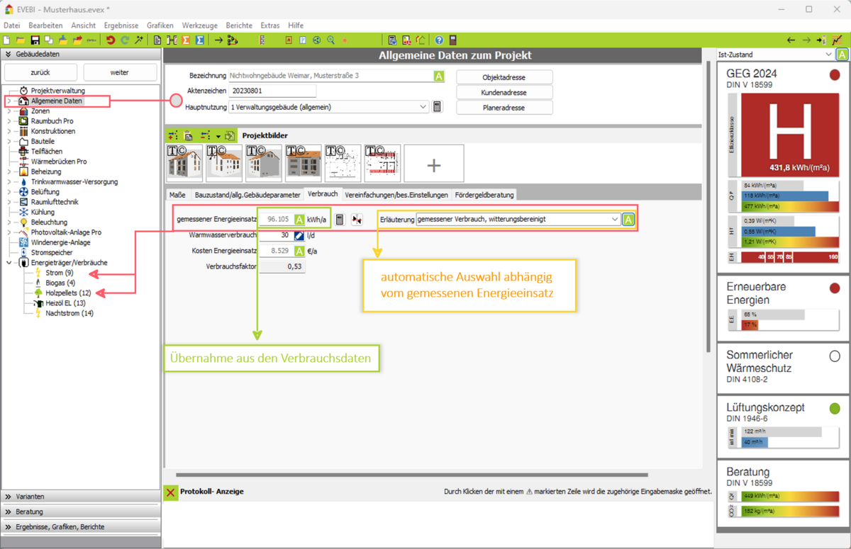 Bearbeiten der Verbrauchsdaten des Gebäudes