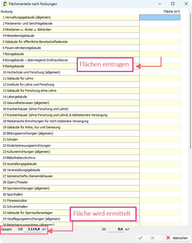 Zusätzliche Allgemeine Projektdaten für Nichtwohngebäude