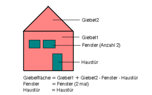- Ein Bauteil (z.B. Außenwand) setzt sich i. d. R. aus mehreren Teilflächen zusammen (siehe Bild).