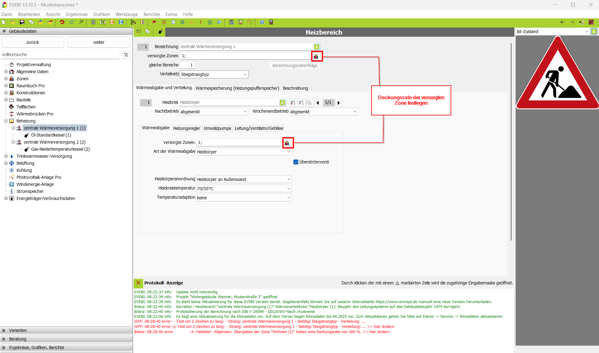 Bilanz: 11:31:50 error - 18599-Validator: Allgemein: Übergaben der Zone ""Wohnen 1"" haben eine Deckungsrate von 200 %.