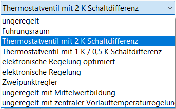 Art der Raumtemperaturregelung: Folgende Auswahl ist möglich: