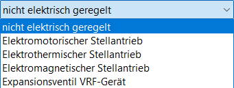 elektrische Regelung der Heizkörper: Folgende Auswahl ist möglich:
