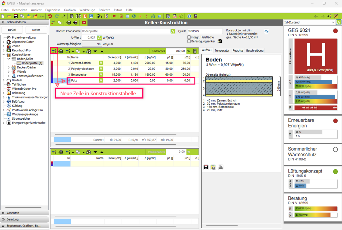 - Neues Material: Es kann direkt das Material aus der Baustoffdatenbank für die neue Schicht gewählt werden.