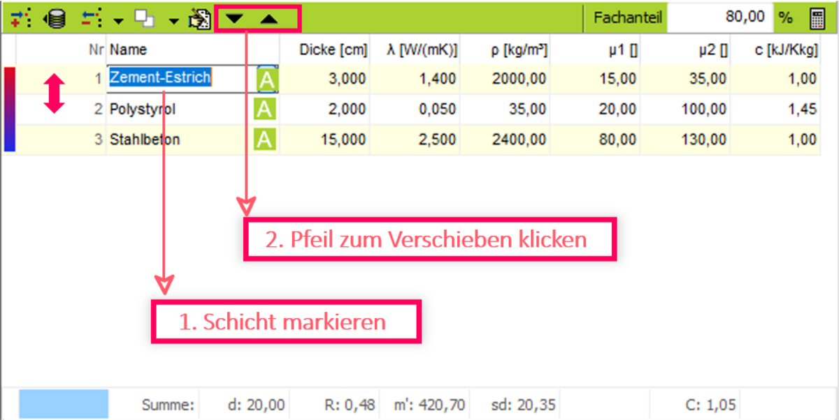Sie können die Reihenfolge der Schichten in der Konstruktion ändern.