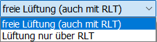 • Lüftung nur über RLT: Hier erfolgt die Belüftung ausschließlich über Raumlufttechnik. Weitere Informationen dazu finden Sie unter: Raumlufttechnik (DIN V 18599)