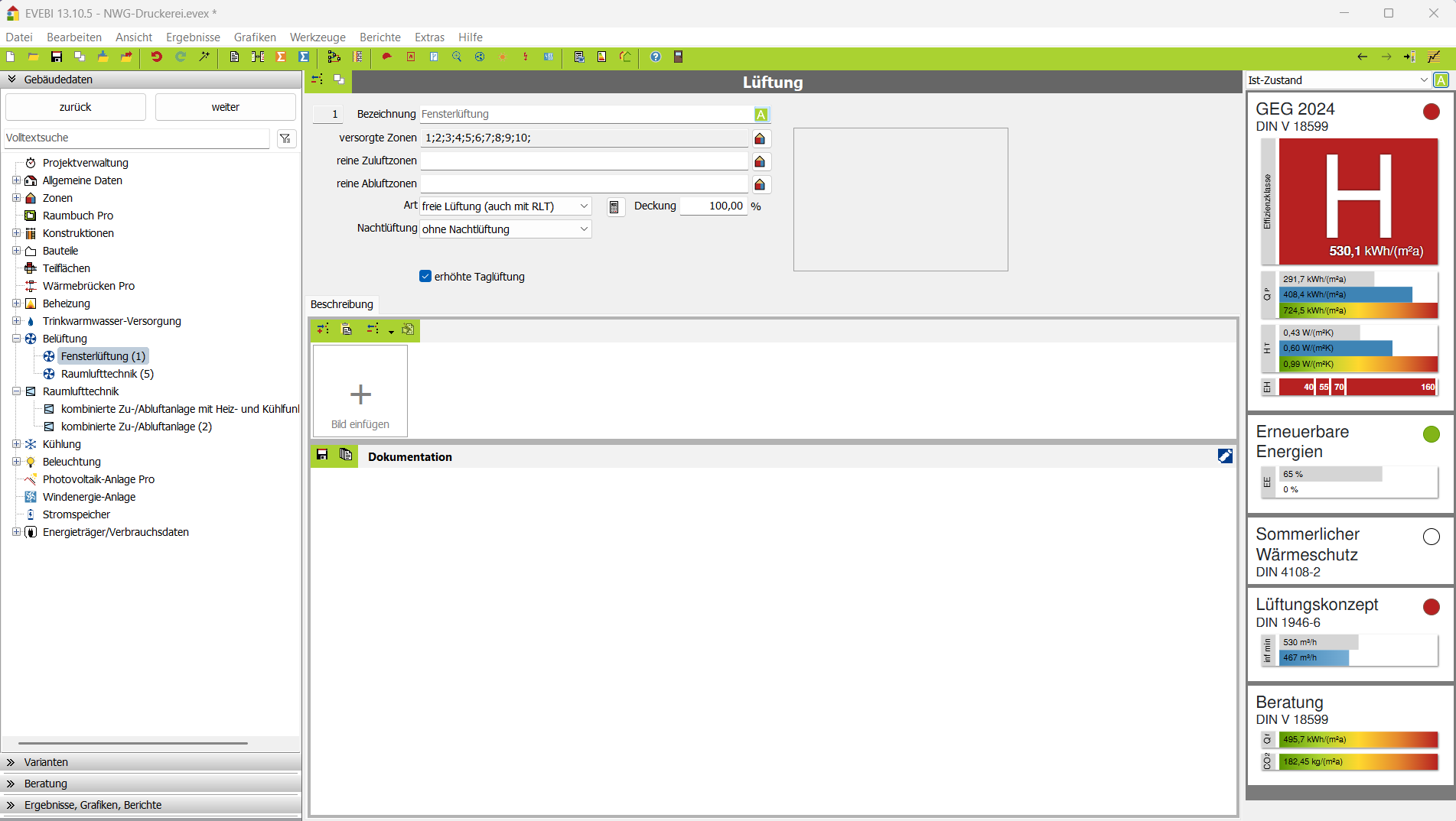 Belüftungsbereiche für Nichtwohngebäude erfassen