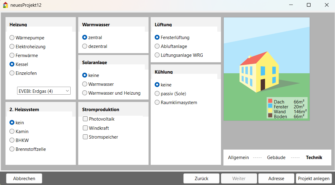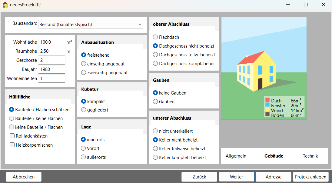 Gebäudetyp: Hier können Sie auswählen um welchen Gebäudetyp es sich handelt.