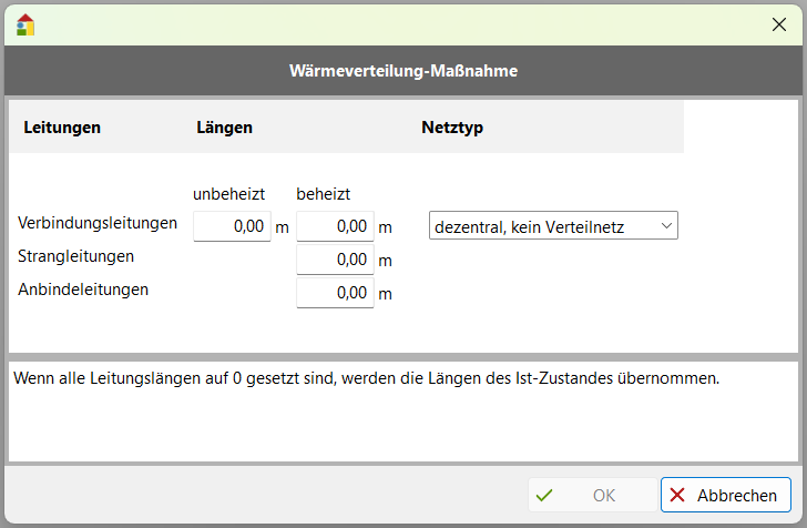 Dialog der Maßnahme Heizleitungs-Längen verändern