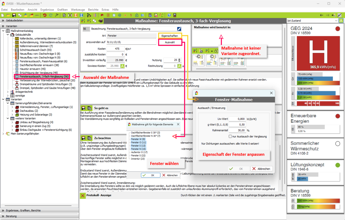 Dialog Eigenschaften der Maßnahme Fenstertausch