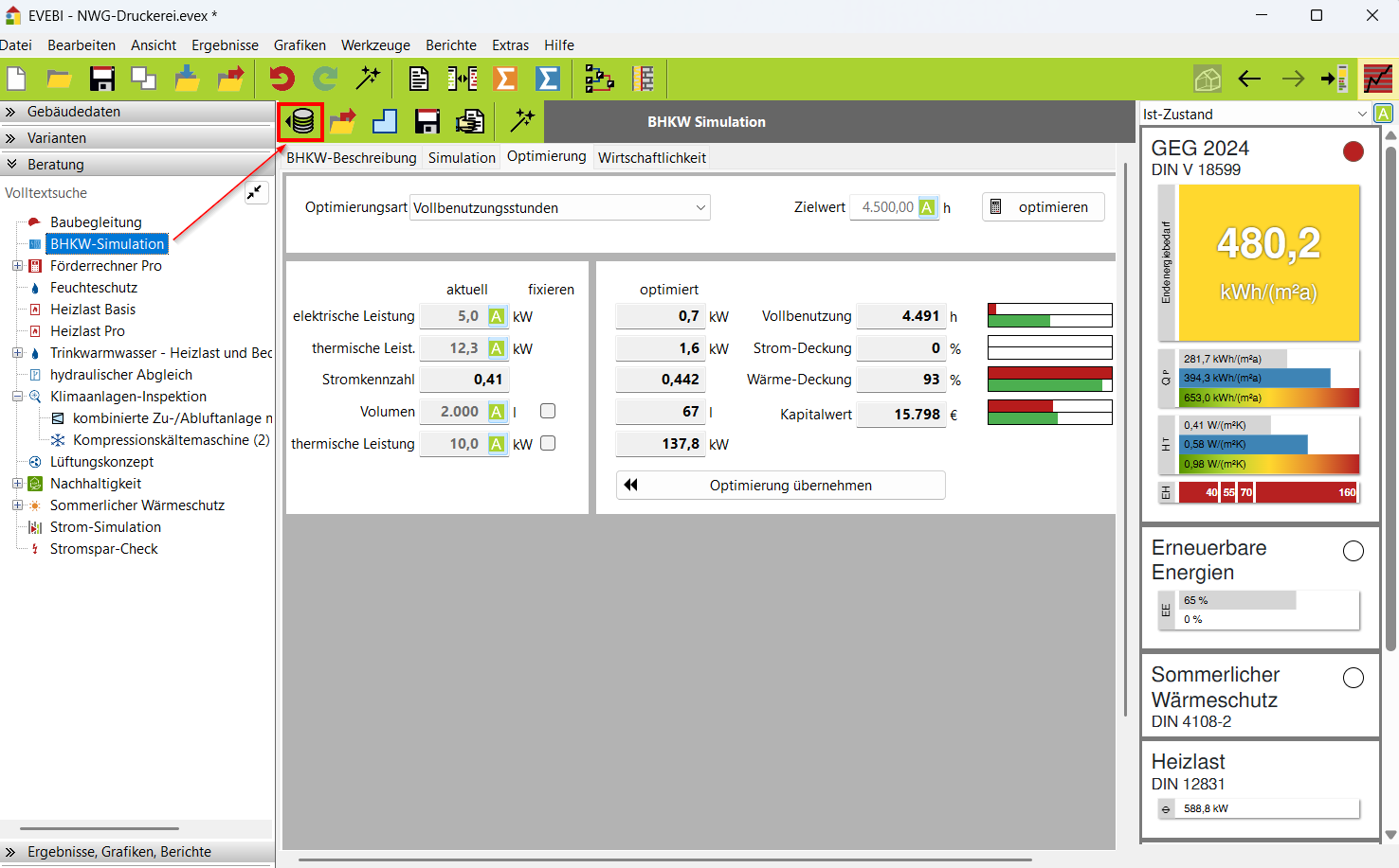 Auslegung/Optimierung der BHKW-Anlage