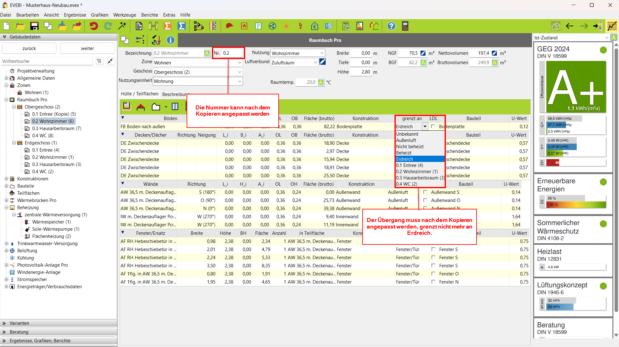Sie haben die Möglichkeit, ein komplettes Geschoss zu kopieren. Das ist in Mehrfamilienhäusern sinnvoll, bei denen mehrere Etagen identisch sind.