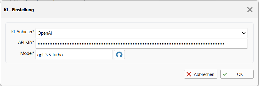 Aufruf Einstellungen > KI - Wählen Sie den gewünschten KI-Anbieter.