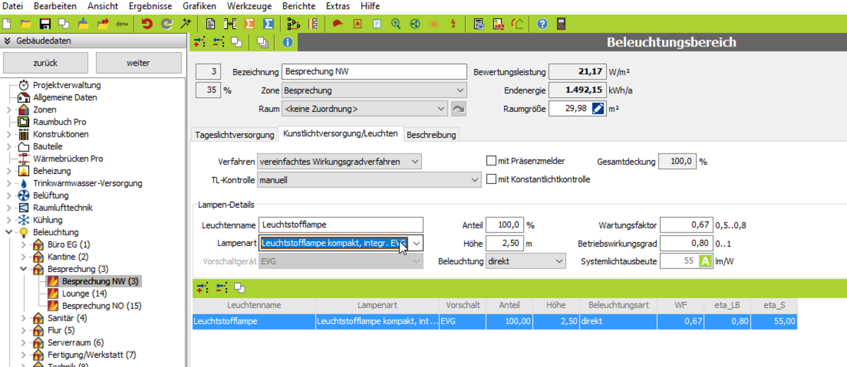 *Hinweis: Beleuchtungsbereiche einschließlich Raumdaten und Fensterdaten müssen erfasst sein. Informationen hierzu finden Sie unter: Beleuchtungsbereich anlegen und bearbeiten