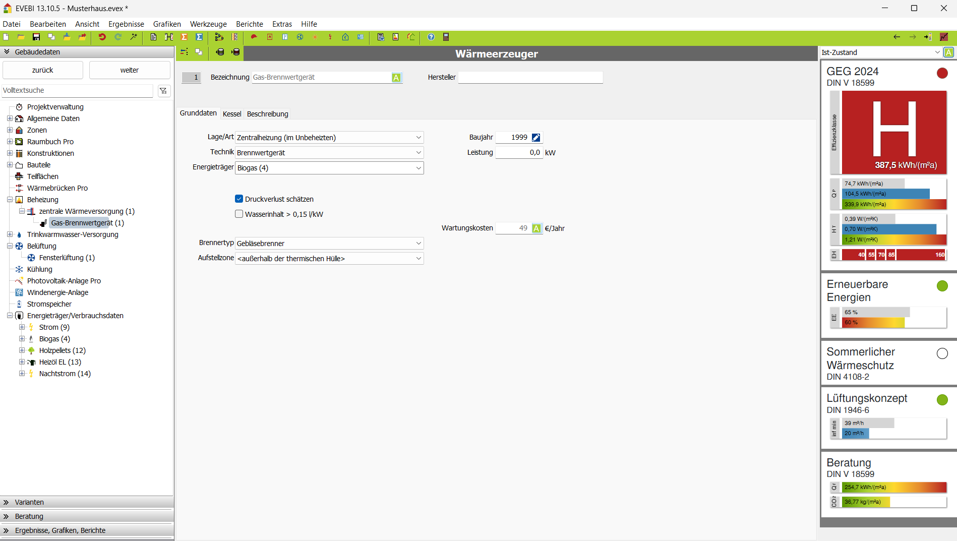 Hinweis: Werte, die nicht bekannt sind, werden durch Standardwerte der Norm DIN V 18599-5, Anhang A ergänzt.