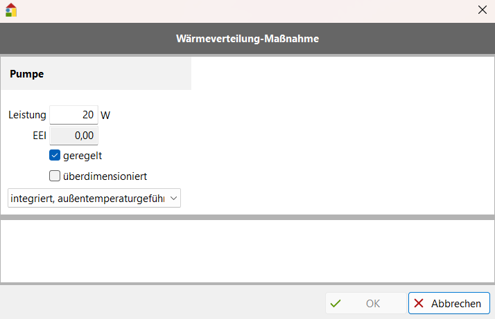 Pumpe ist überdimensioniert: nur für Berechnung nach DIN V 18599 relevant! Mit dieser Option wird der Überdimensionierungsfaktor auf 2 gesetzt (Berechnung der Aufwandszahl der Pumpe).