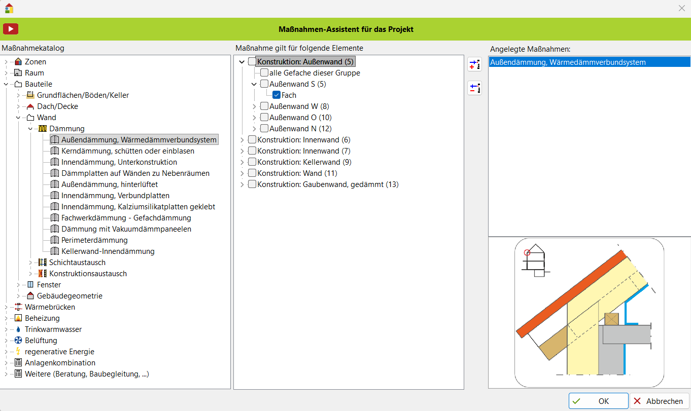 Auswahl Dämm-Maßnahme über Maßnahmen-Assistent