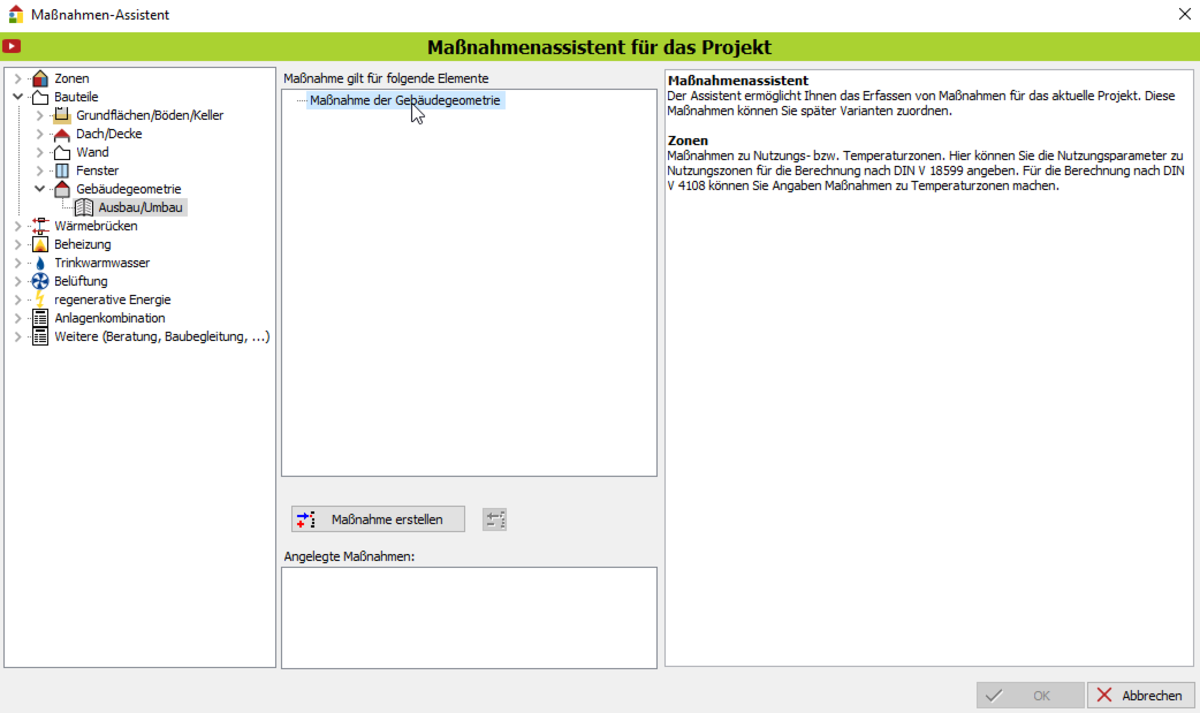 8. Die Maßnahme zur Änderung der Gebäudegeomatrie wird angelegt.