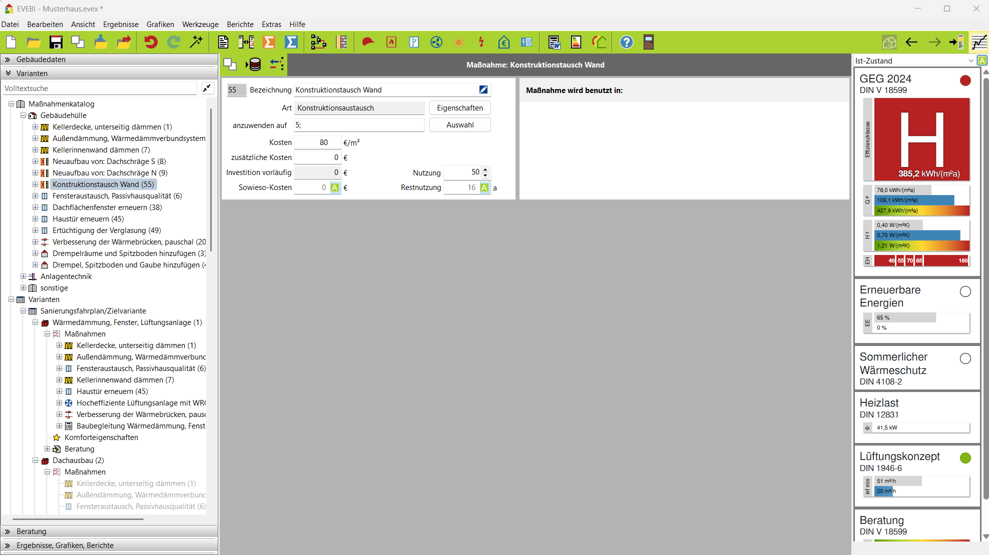 Achtung! Das Bearbeiten einer Maßnahme hat Auswirkung auf alle Varianten, denen diese Maßnahme bereits zugeordnet ist!