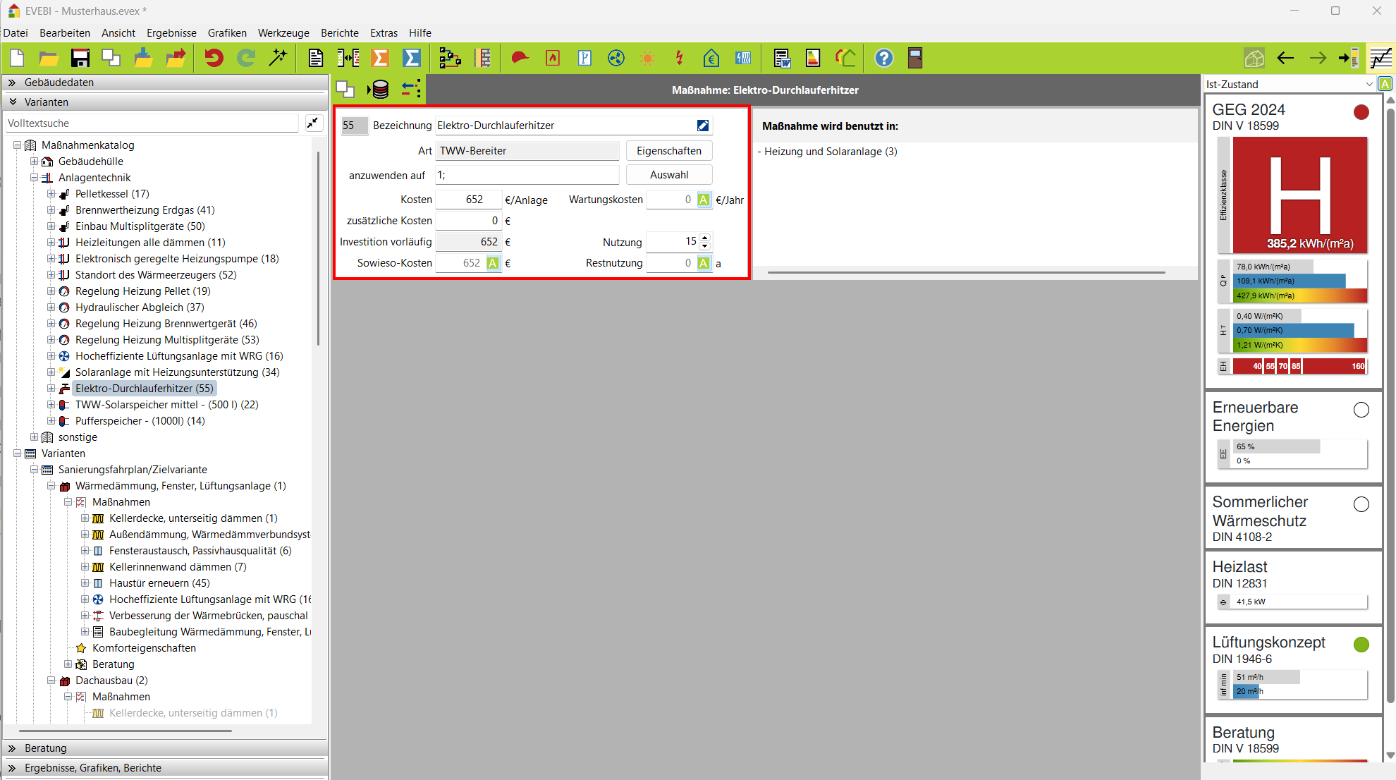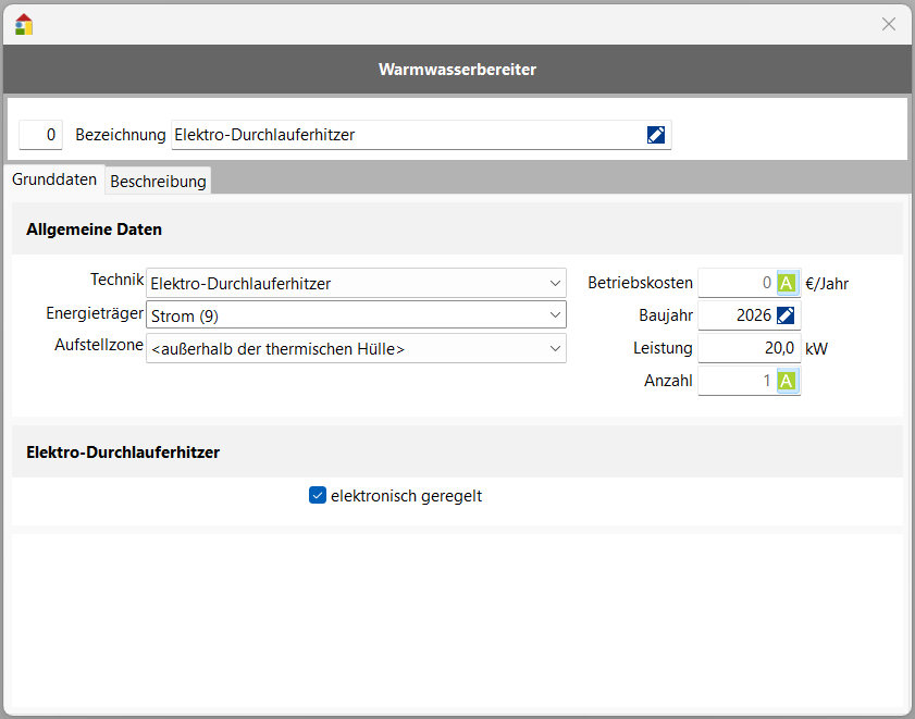 Energieträger: In Abhängigkeit der gewählten Maßnahme ist dieser bereits vorbelegt.