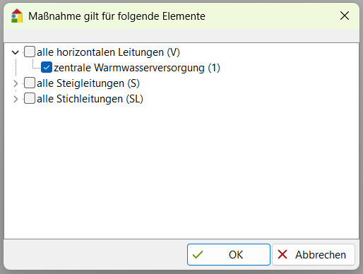 Über die Schaltfläche haben Sie die Möglichkeit auszuwählen auf welche Elemente die Maßnahme angewendet werden soll.