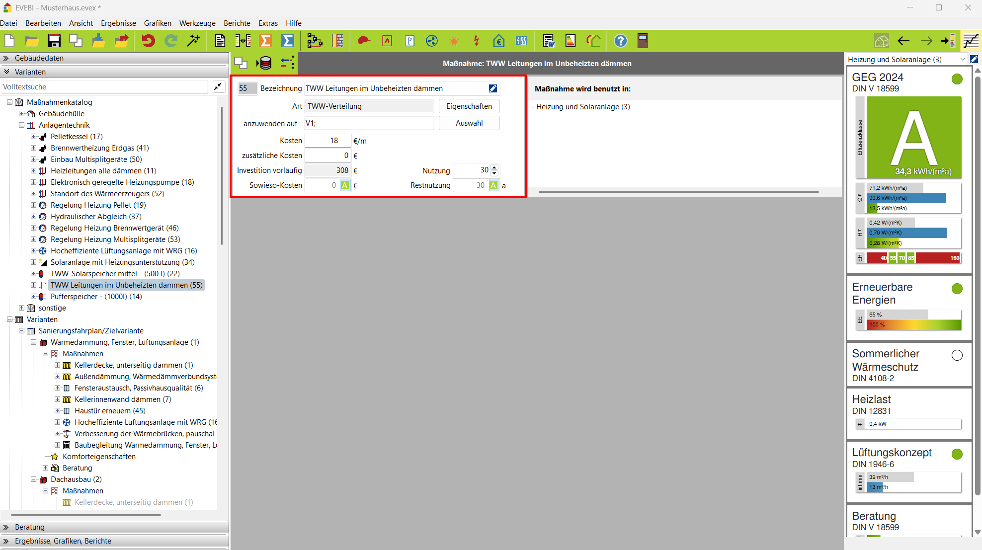 Achtung! Das Bearbeiten einer Maßnahme hat Auswirkung auf alle Varianten, denen diese Maßnahme bereits zugeordnet ist!