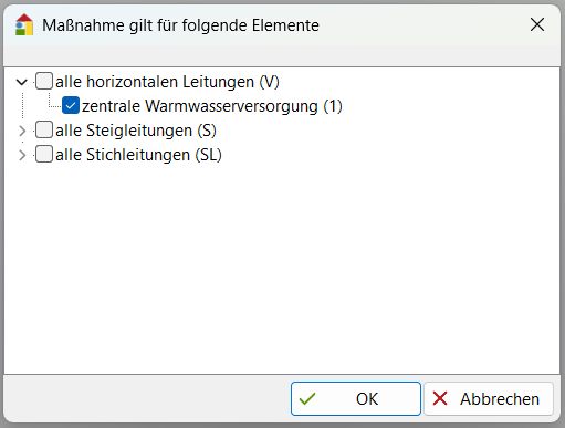 Über die Schaltfläche haben Sie die Möglichkeit auszuwählen auf welche Elemente die Maßnahme angewendet werden soll.