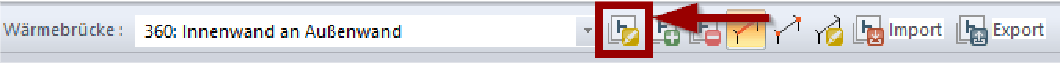 Über das „Stift“-Symbol können Sie bereits zugwiesen Wärmebrücken bearbeiten. Wählen Sie zunächst den entsprechenden Wärmebrücken-Typ über das Drop-Down-Menü aus. Anschließend betätigen Sie die Schaltfläche Aktive Wärmebrücke bearbeiten.